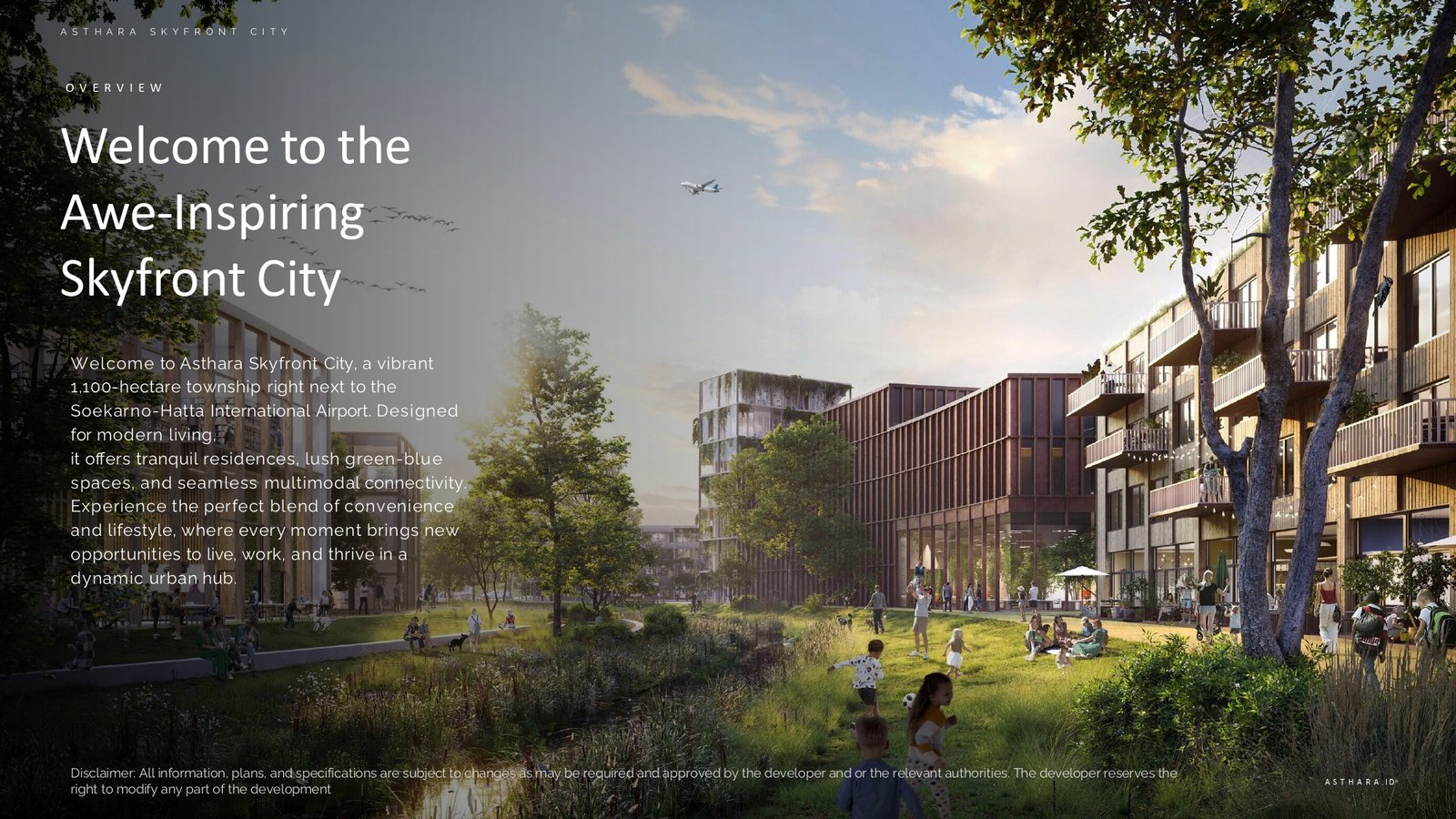 Asthara Skyfront City adalah kawasan hunian dan bisnis yang terletak di lokasi strategis, hanya beberapa langkah dari Bandara Internasional Soekarno-Hatta, Jakarta. Dengan luas area lebih dari 1.100 hektar, Asthara Skyfront City menawarkan konsep kota mandiri yang mengintegrasikan kehidupan modern, pekerjaan, hiburan, dan rekreasi dalam satu kawasan yang penuh dengan fasilitas unggulan.